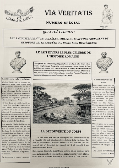 27 janvier 2026 Qui a tué Clodius ? Les élèves latinistes de troisième du collège vous propose de résoudre cette enquête qui reste bien mystérieuse Post Info Author Info hmalaize 27 janvier 2026 Actions culturelles, Actualités et archives Previous post Participez à un ciné-débat ! hmalaize Administrateur/administratrice Posts by hmalaize Participez à un ciné-débat ! 27 janvier 2026 Sortie au cinéma des 4e1 et 4e2 27 janvier 2026 Projet « Nous sommes d’ici » 8 janvier 2026 Sortie au Havre des 3e5 7 janvier 2026 Golden tickets au collège ! 16 décembre 2025 Comments by hmalaize Previous post « Contact Collège Camille du Gast 188 avenue du Général de Gaulle – 78260 Achères Tél. 01 34 01 22 00 ce.0783636d@ac-versailles.fr Liens utiles Rectorat de Versailles Onisep CIO Conseil Général Yvelines Mairie d’Achères Archives janvier 2026 décembre 2025 novembre 2025 octobre 2025 septembre 2025 juin 2025 mai 2025 mars 2025 février 2025 décembre 2024 novembre 2024 septembre 2024 juin 2024 mai 2024 février 2024 décembre 2023 octobre 2023 juillet 2023 juin 2023 mai 2023 avril 2023 février 2023 janvier 2023 octobre 2022 juillet 2022 juin 2022 mai 2022 avril 2022 février 2022 janvier 2022 novembre 2021 octobre 2021 août 2021 juillet 2021 juin 2021 mai 2021 mars 2021 février 2021 janvier 2021 décembre 2020 septembre 2020 mai 2020 avril 2020 mars 2020 février 2020 janvier 2020 décembre 2019 novembre 2019 juillet 2019 juin 2019 mai 2019 avril 2019 janvier 2019 décembre 2018